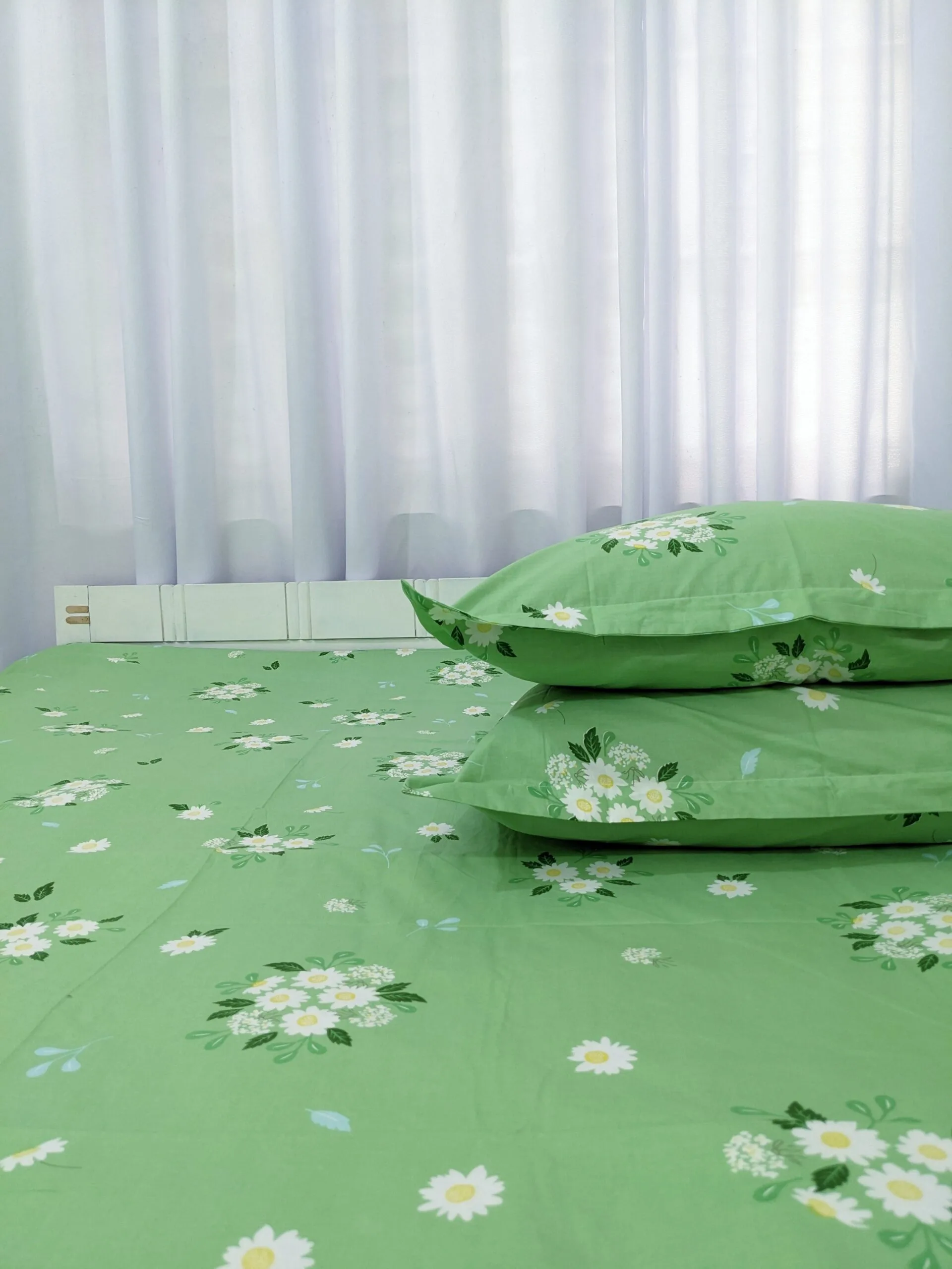 Care : Machine wash with regular water. Do not use bleach or fabric softener. Tumble dry low heat. Iron as needed.